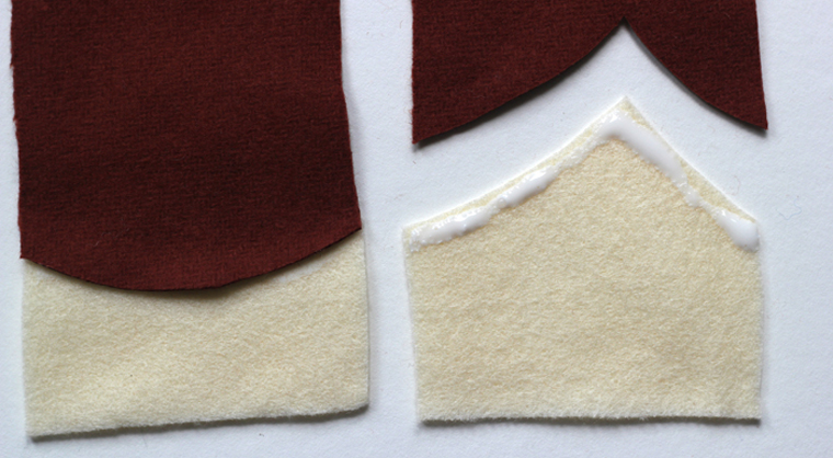 1. Glue the bottom edge of the 'hair' felt piece to the top edge of the 'skin' felt piece.